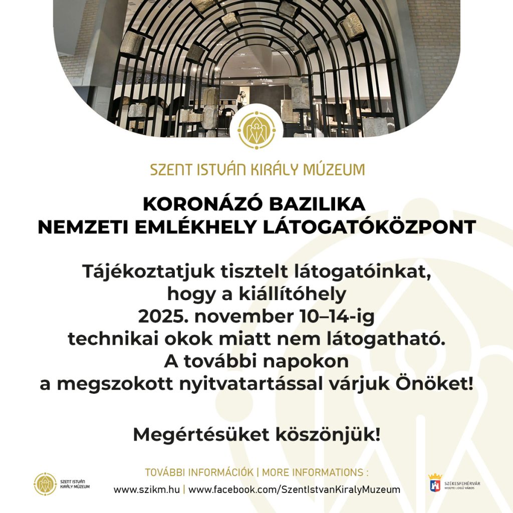 2025. november 10-14-ig zárva lesz a Koronázó Bazilika Nemzeti Emlékhely Látogatóközpont Leave a Comment / Hírek / Események / By kovacs.varga.orsolya