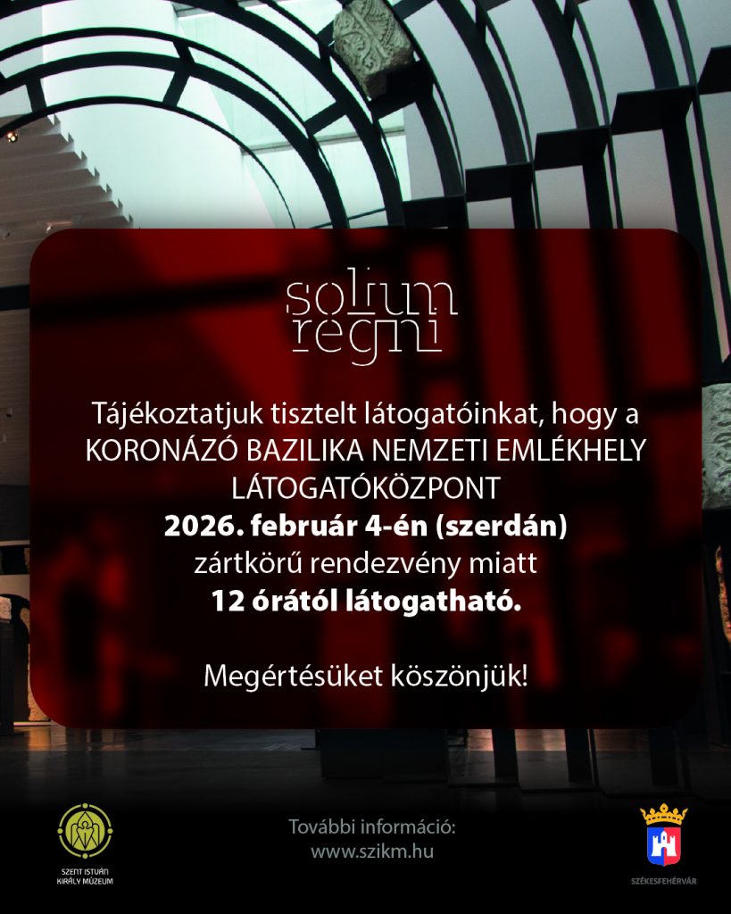 Tájékoztatjuk tisztelt látogatóinkat, hogy a Koronázó Bazilika Nemzeti Emlékhely Látogatóközpont 2026. február 4-én, szerdán zártkörű rendezvény miatt 12 órától látogatható.